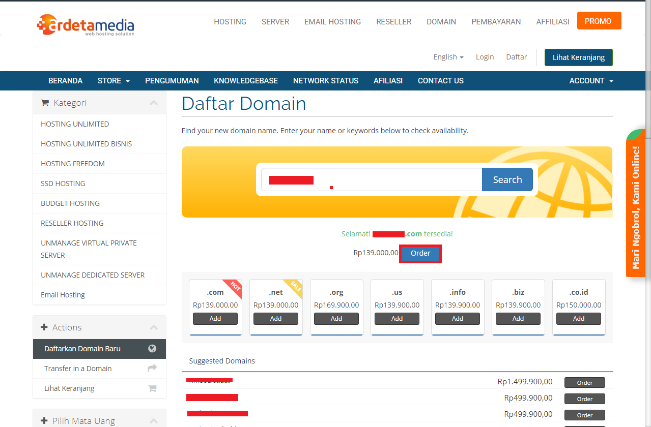 Berikut panduan singkat cara pemesanan domain di Ardetamedia :
