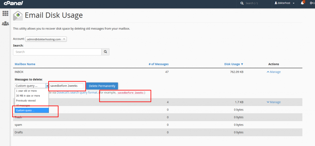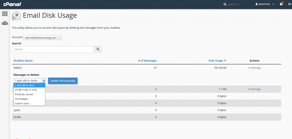 Cara menghapus inbox email di cpanel