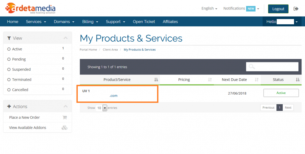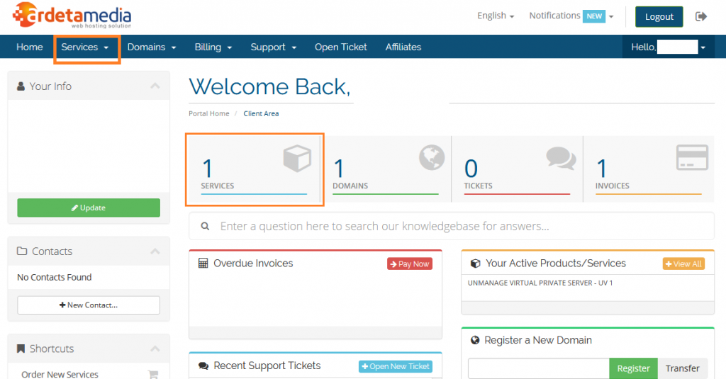 https://member.ardetamedia.com/clientarea.php[/caption] - Pilih Service untuk melihat semua layanan yang kita miliki