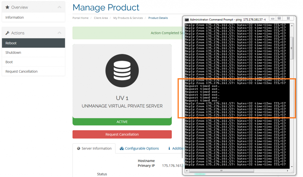 Halaman Informasi Server VPS yang sedang berjalan[/caption] - Melakukan Reboot VPS melalui Member Area