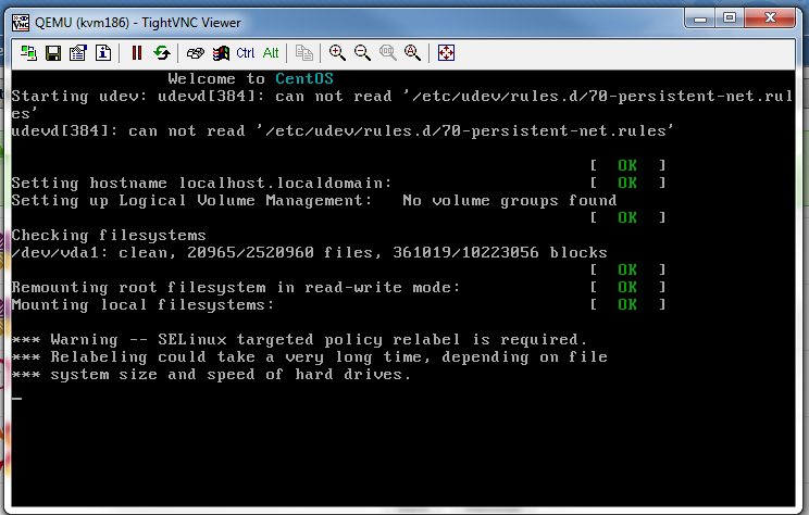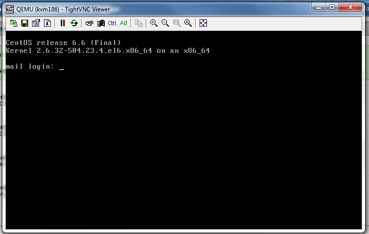 Proses booting saat proses installasi dapat dipantau melalui VNC (lihat langkah no.6), jika sudah selesai maka tampilannya akan seperti berikut .