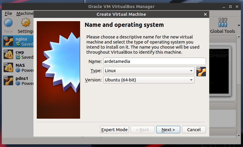 Membuat mesin virtual pada virtualbox. Setelah sebelumnya membahas tentang cara install virtualbox di ubuntu 18.04. Kali ini akan membahas tentang pembuatan mesin virtual pada virtualbox. Pada tutorial kali ini saya akan membuat mesin virtual untuk keperluan installasi operating system ubuntu server. Anda bisa melakukan installasi degan OS yang lain sesuai dengan keinginan.