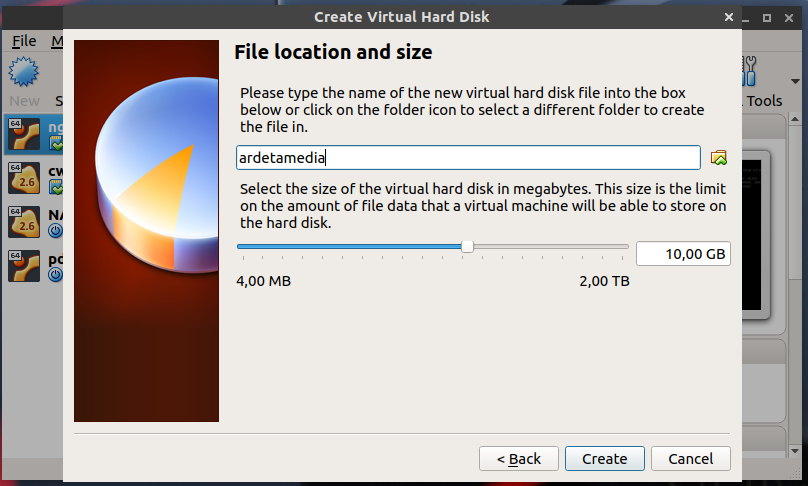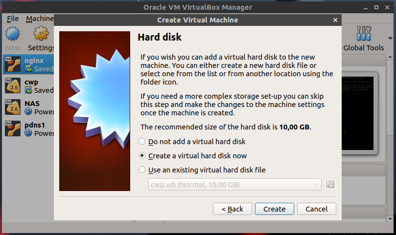 Langkah 4. Buat virtual hardisk untuk meletakan data mesin virtualboxnya.[/caption]