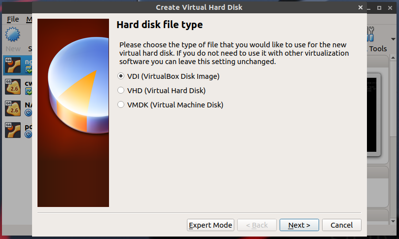 Langkah 5. Pilih tipe hardisk menggunakan "VDI"[/caption]